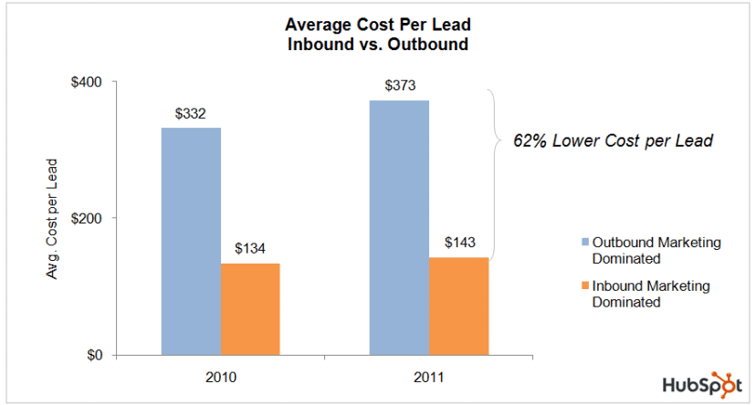 - Outbound marketing (such as Direct mail, PPC (paid search), Telemarketing and Tradeshows) shows lead costs average $373